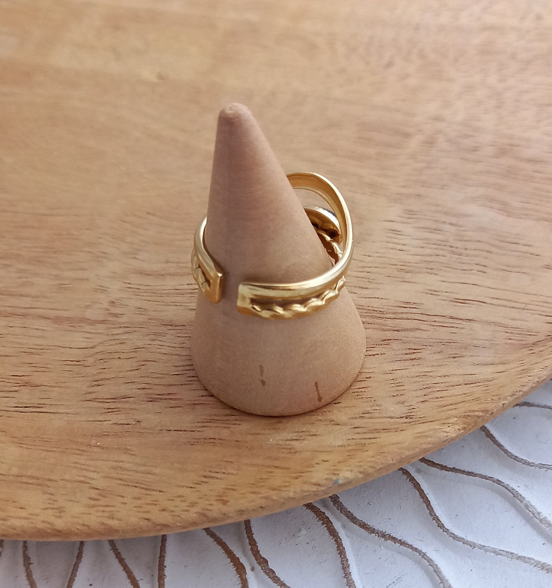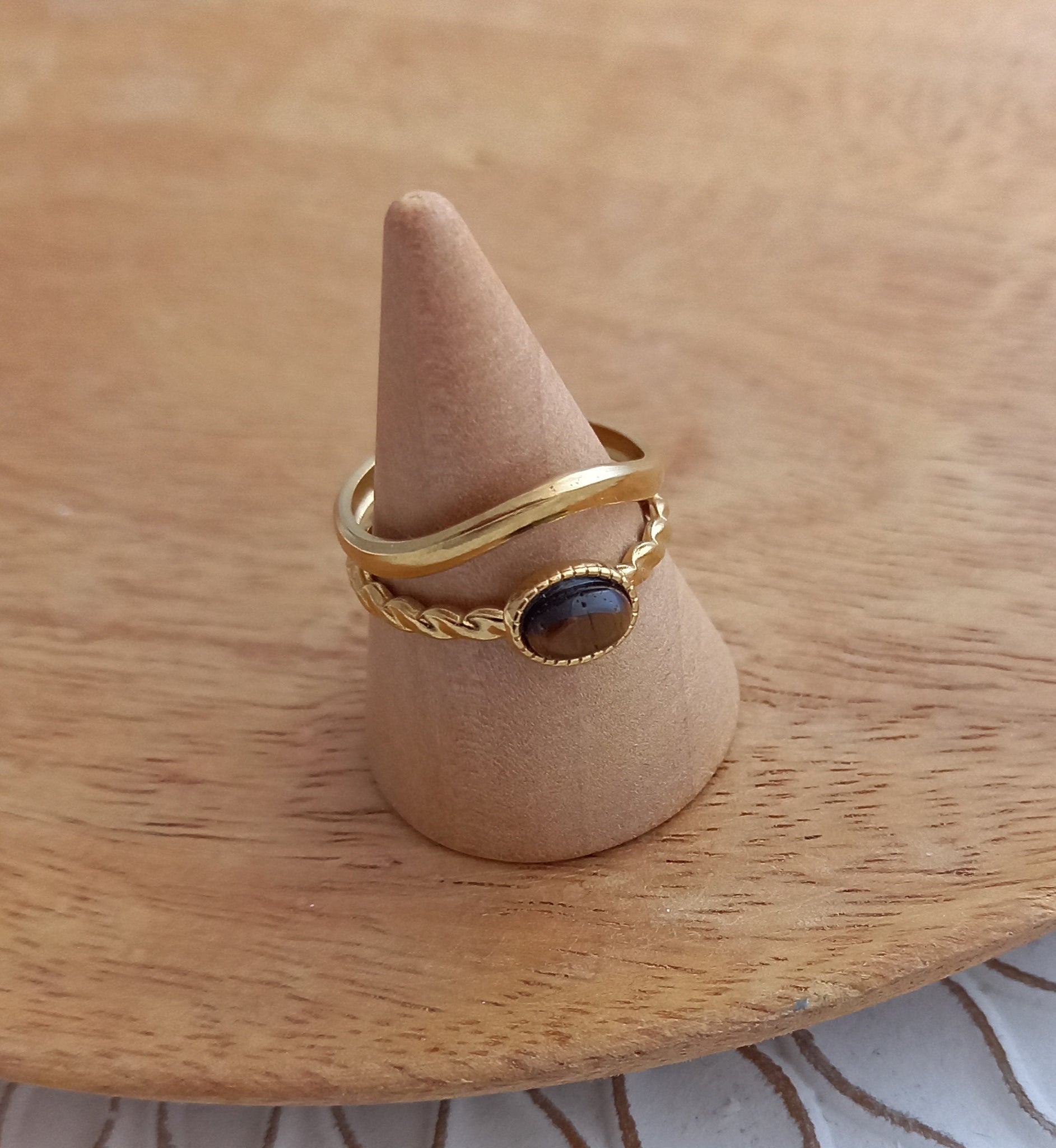 Bague Fantaisie acier inoxydable Pierre naturelle Œil de tigre Réglable