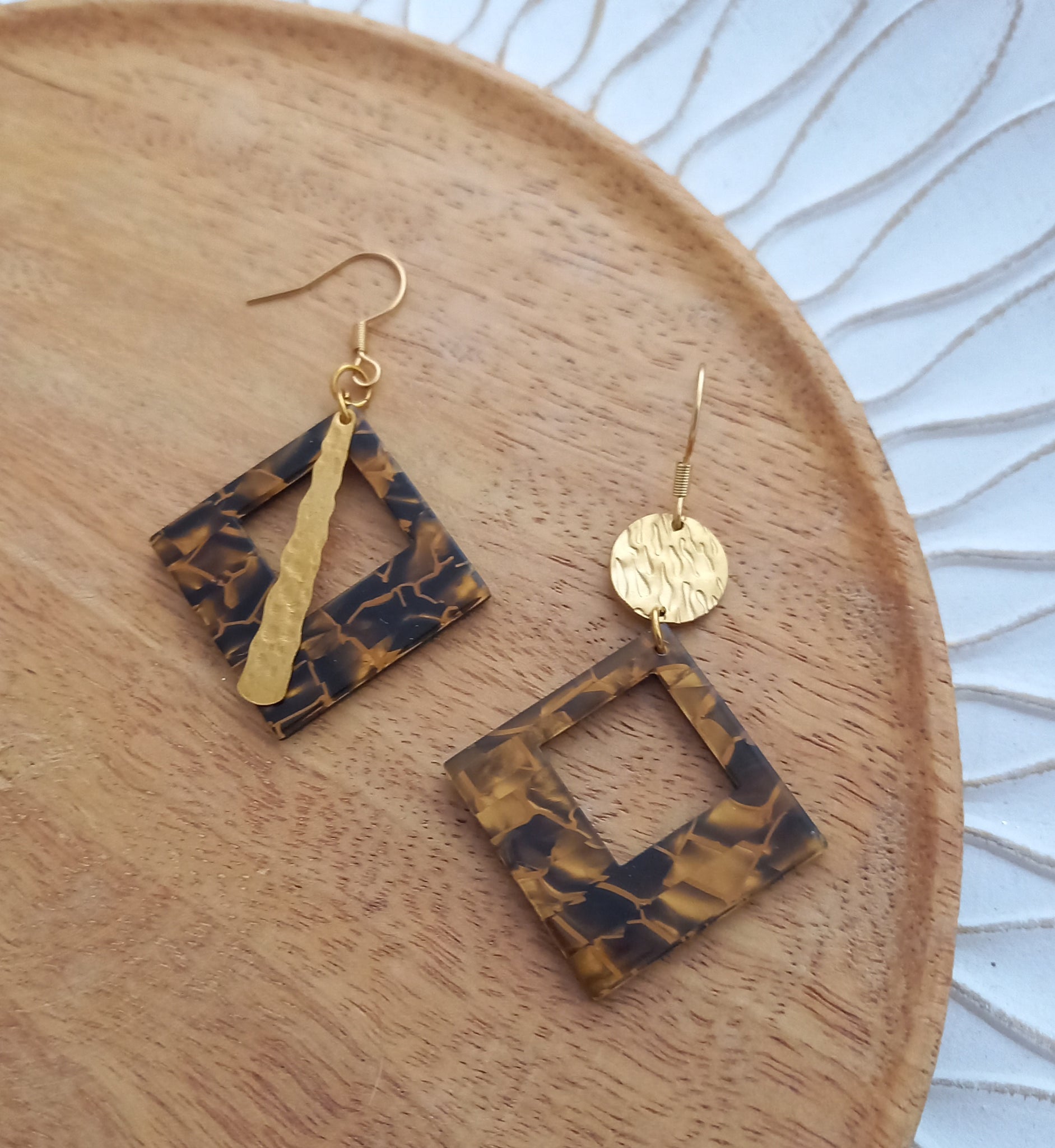 Boucles d'oreilles  asymétriques dorées  camel Fait-main ❤ dépareillées