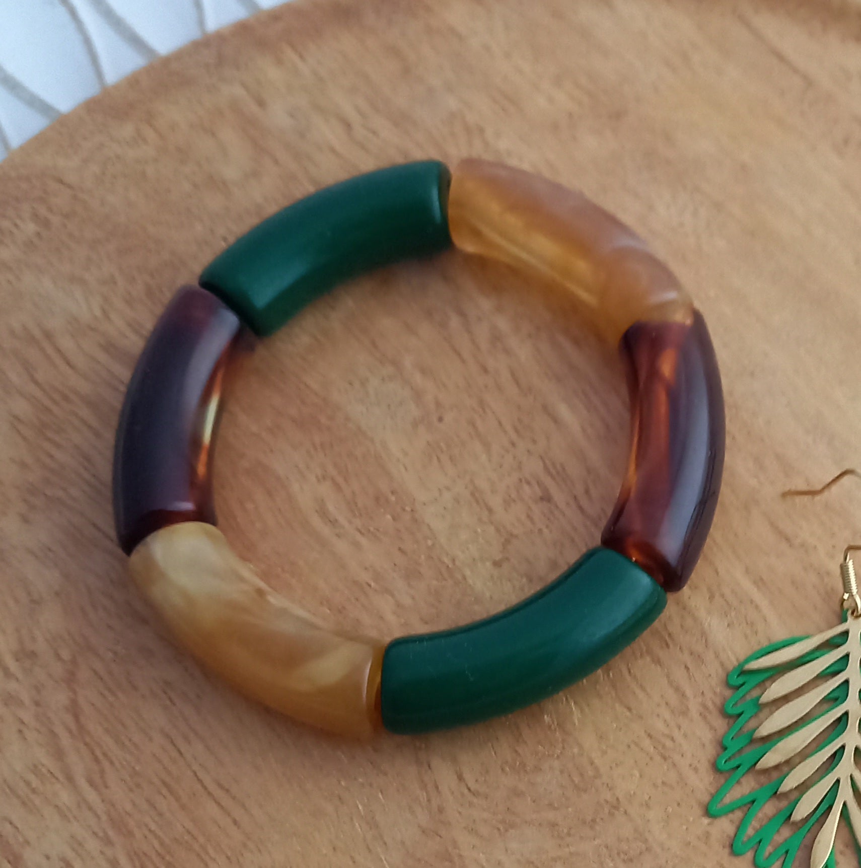 La dernière tendance, bracelet élastique de perles tubes acryliques incurvées.