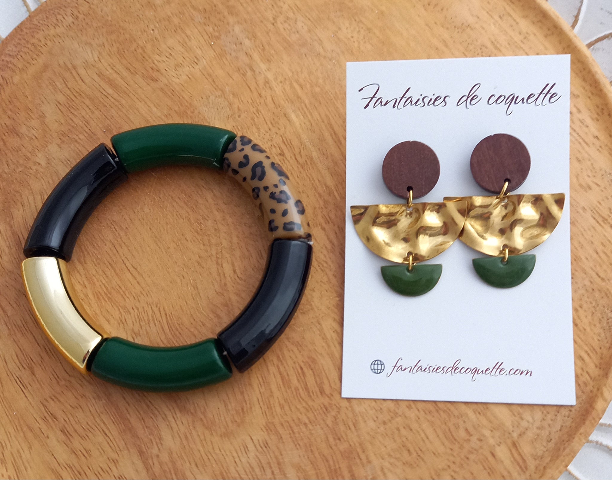 La dernière tendance, bracelet élastique de perles tubes acryliques incurvées.