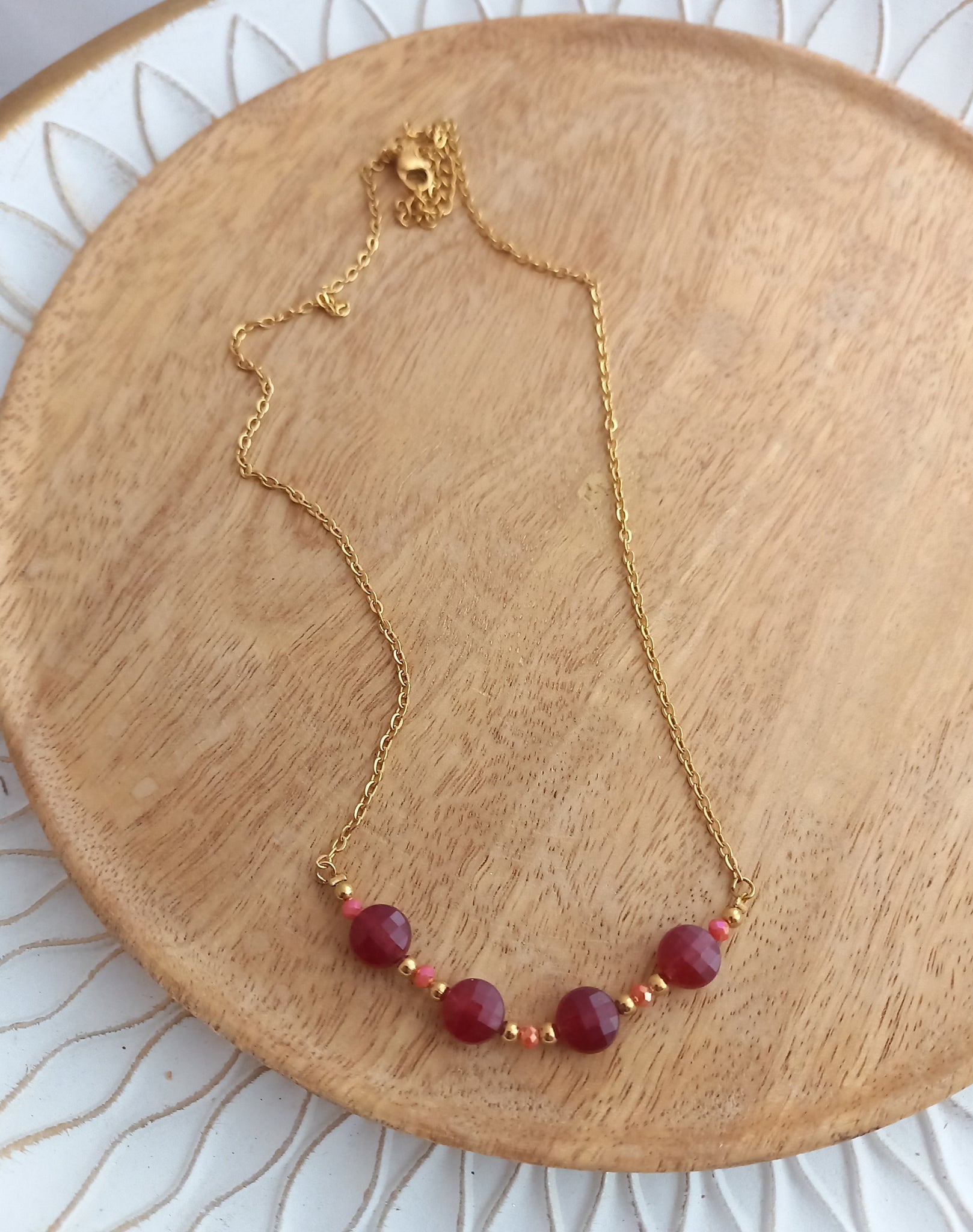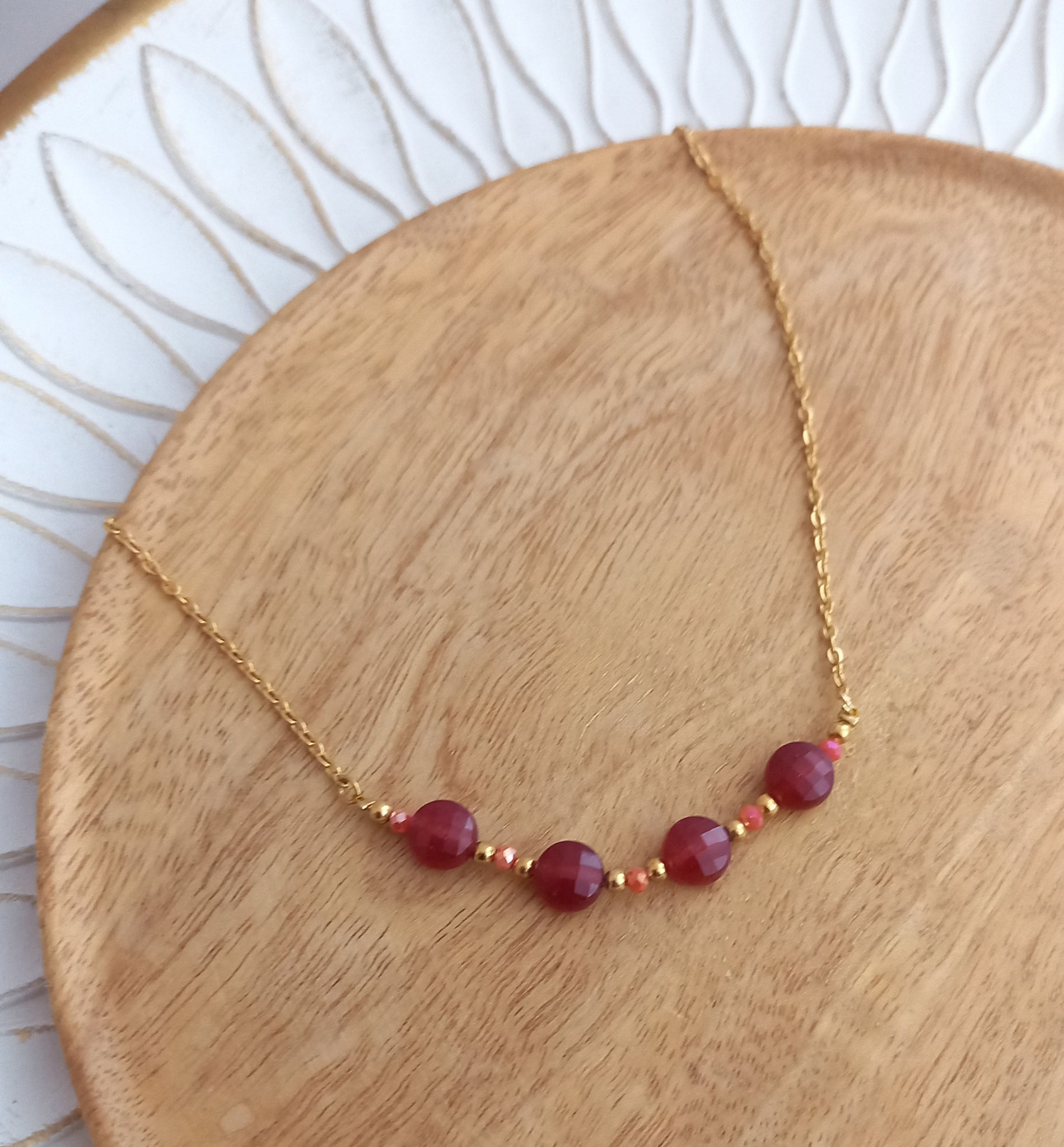 Adoptez un look chic et raffiné avec ce très beau collier qui ne manquera pas de faire sensation avec sa chaîne en acier inoxydable, sublimée de pierres naturelles rouges.