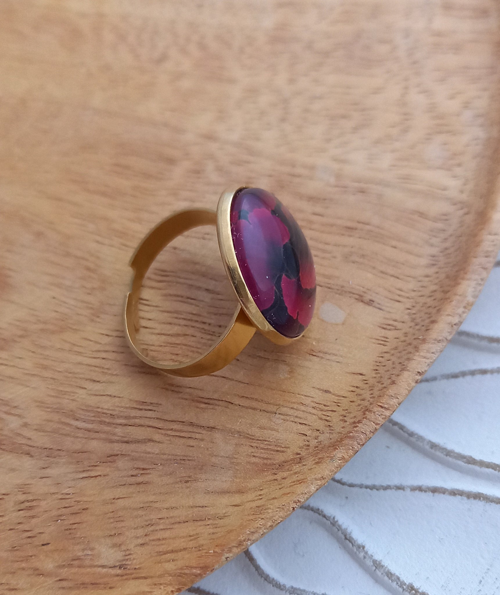 Bague Fantaisie illustrée Taille Réglable Noir bordeaux
