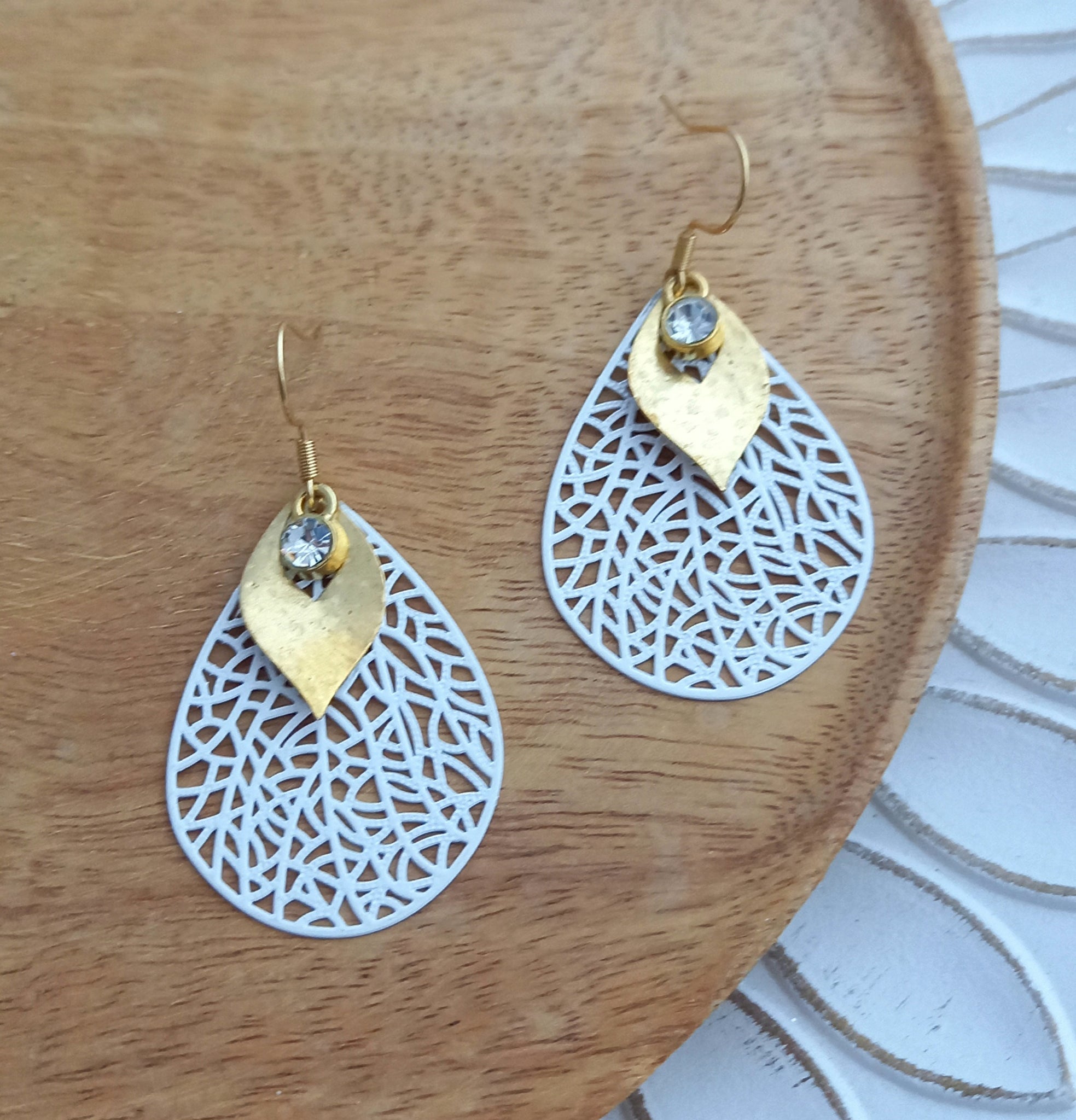 Boucles d'oreilles   dorées Acier inoxydable  Blanc Fait-main
