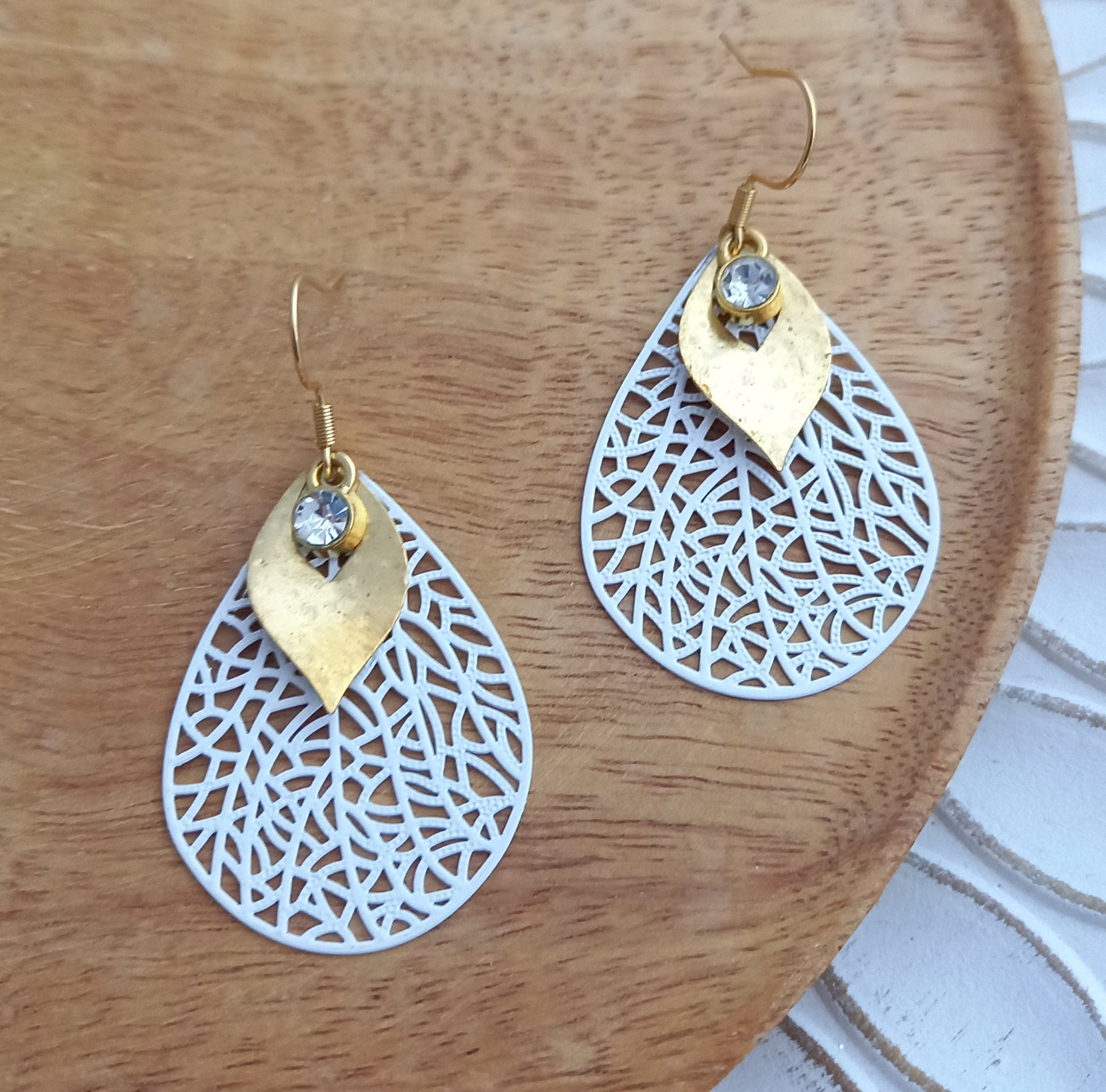 Boucles d'oreilles dorées Acier inoxydable Blanc Fait-main