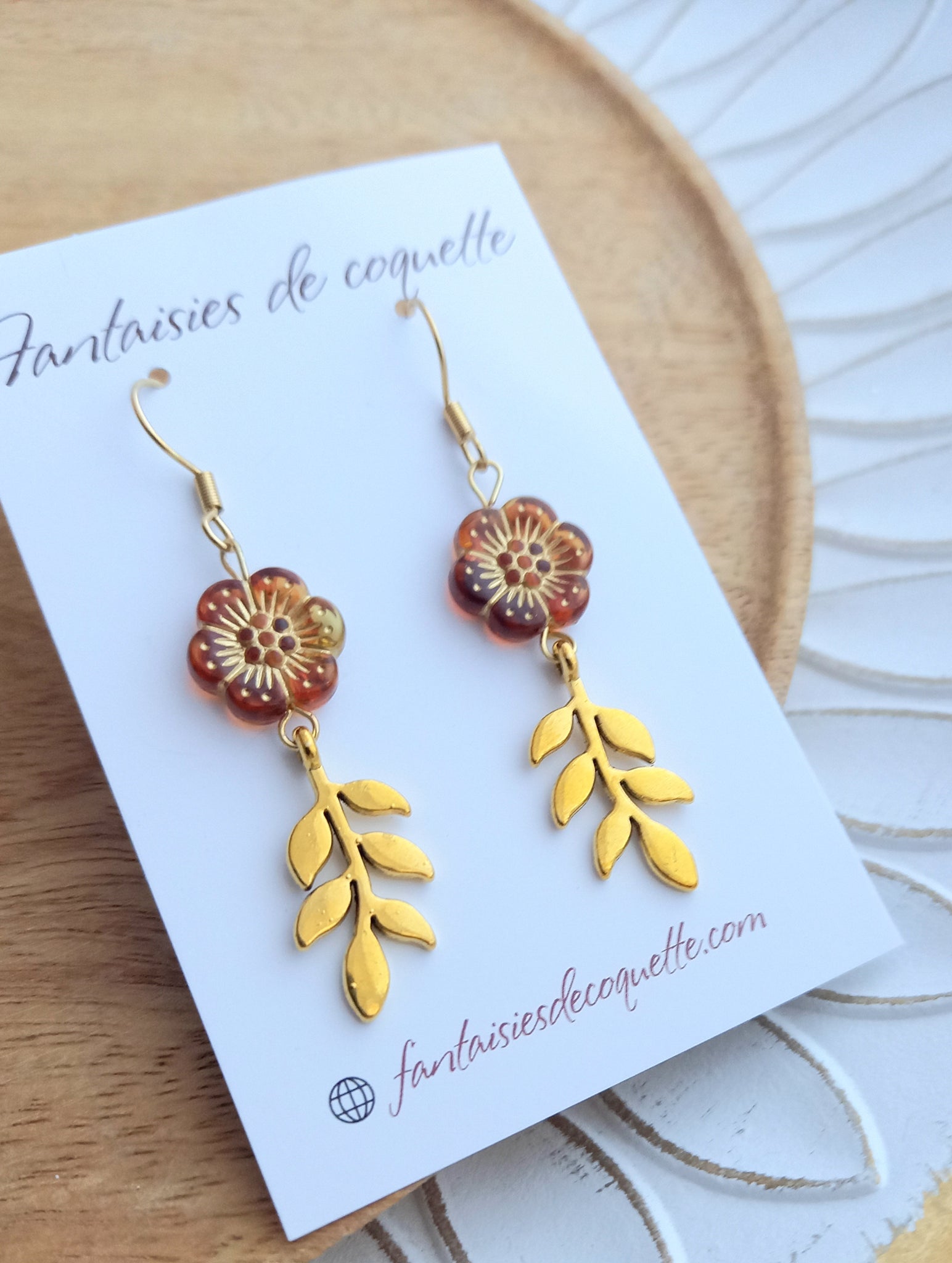 Boucles d'oreilles dorées Acier inoxydable Fleur Fait-main