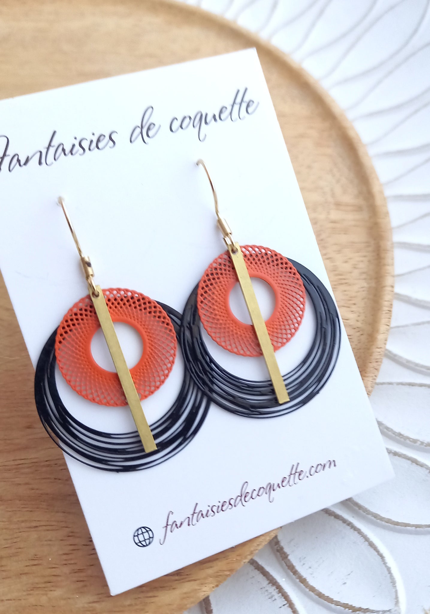 Boucles d'oreilles dorées Orange Noir
